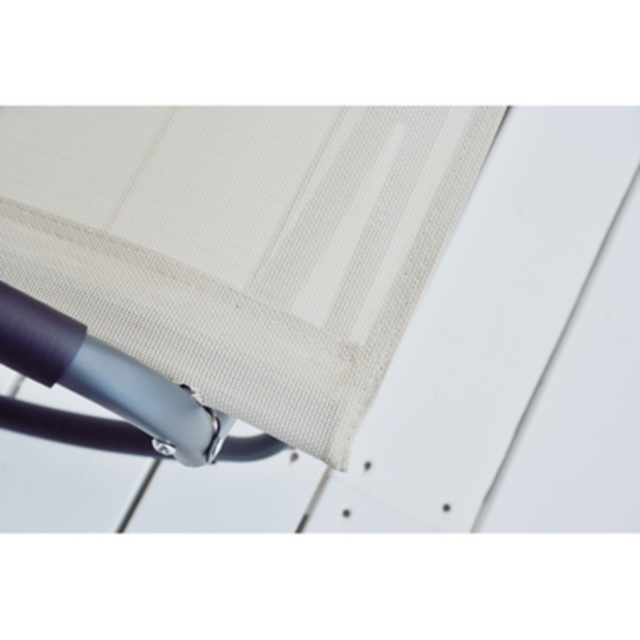 両サイドのひじ掛け部分を中央に折りこむだけ。座っているときや立ち上がるときにチェアが倒れすぎないように前の2か所に補助脚がついているので安心。
